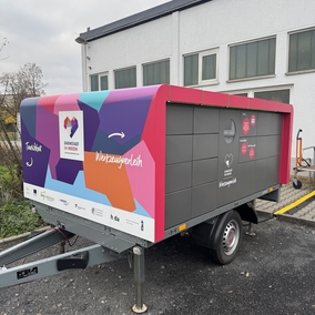 Auf dem Gelände des Kaufhauses der Gelegenheiten (KAGEL) gibt es seit Kurzem ein neues Angebot: eine mobile Werkzeugverleihstation von „Darmstadt im Herzen“, einer Initiative der HEAG.