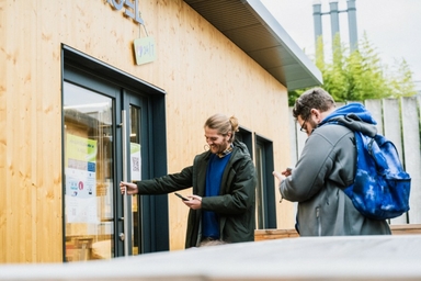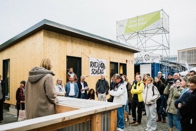 Neues Sharing-Angebot auf dem Campus Lichtwiese: Im Rahmen des „Sharing DAy“ am 29.10. wurden die kürzlich errichteten Räumlichkeiten für das „KAGEL 24/7“, einer Außenstelle des Darmstädter Second-Hand-Kaufhauses KAGEL, sowie an die bereits etablierte Fahrrad-Selbsthilfewerkstatt „RADSCHLAG“ feierlich übergeben. Die neuen Holzmodulbauten sind Teil des „DELTA Sharing-Hub“, der am Campus Lichtwiese Teil des gleichnamigen Reallabors ist.